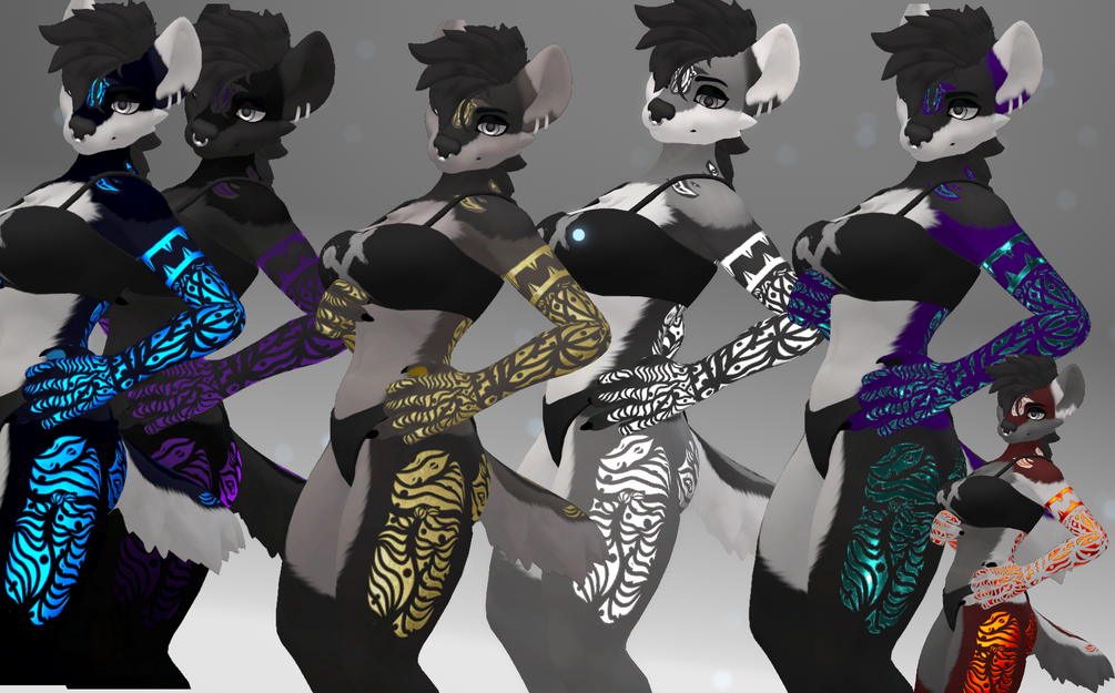 Meet Videntis: The Seer now as a Hyenid as seen above there is 6 versions of the texture for hue shifting and for many taste/prefer colors while the tattoo is on the body with it is a mask so u can make the markings glow/shine whatever u wanna do have fun with it.